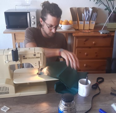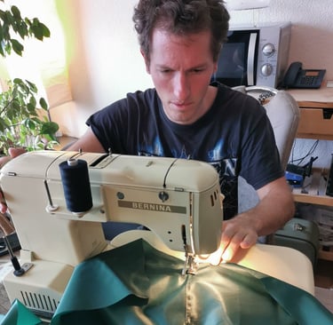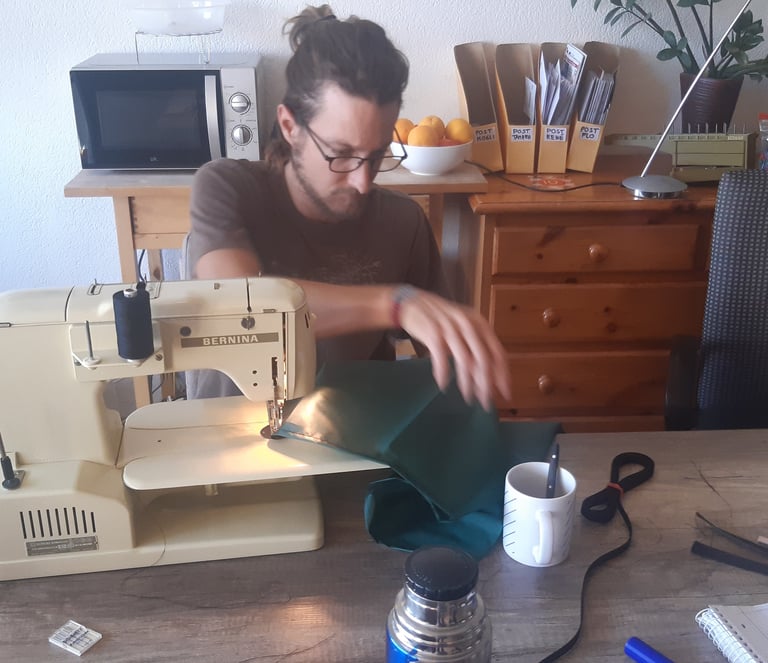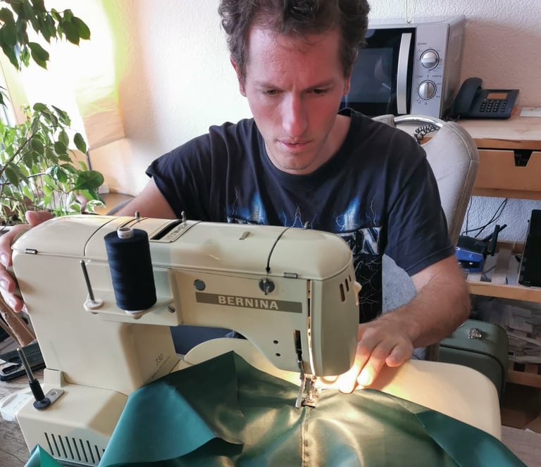 The second step was to find material, sewing machines