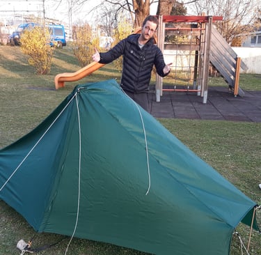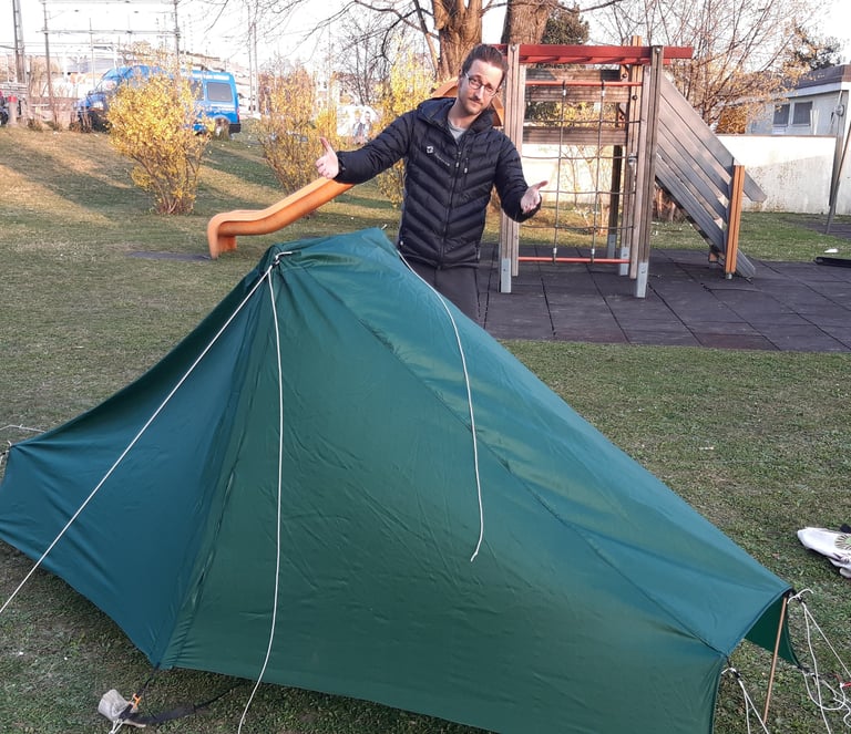 As we were quite exited to pitch our first tent, the result was quite disapointed. The main issue of this prototype was the overall stability of the A frame that wasnt suitable for camping in high wind.